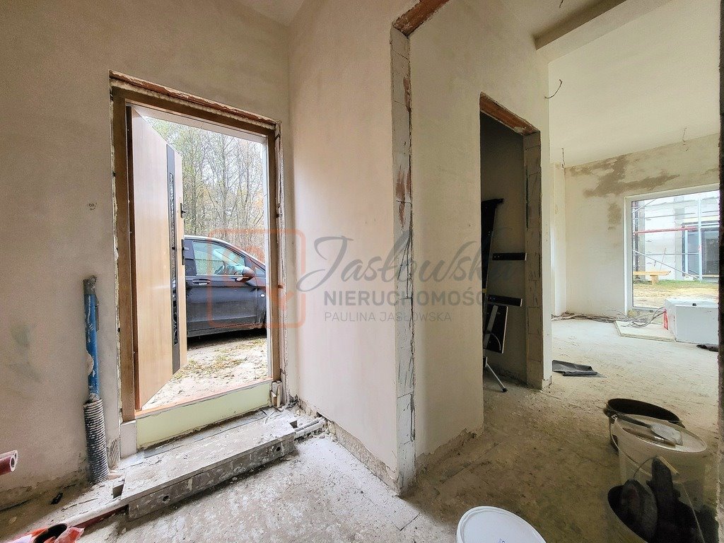 Wykończenie wnętrz: tynki gipsowe, wylewki, rozprowadzone instalacje elektryczne i sanitarne, przygotowanie pod montaż ogrzewania podłogowego oraz pompy ciepła.