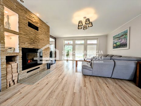 W środku znajdują się cztery jasne, przestronne sypialnie, duży salon z kominkiem i wyjściem na zadaszony taras, przestronny przedpokój, a także funkcjonalna kuchnia z jadalnią. Dwie łazienki - jedna z prysznicem, druga z wanną - zapewniają wygodę wszystkim domownikom.