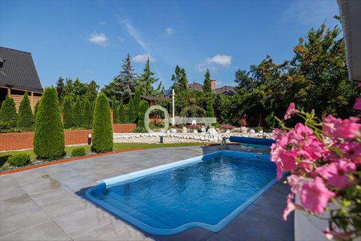 Na szczególną uwagę zasługuje teren wokół domu - duży, zadbany ogród z licznymi nasadzeniami, oczkiem wodnym i boiskiem do piłki nożnej. Do dyspozycji mieszkańców pozostaje również prywatny basen oraz przestronny, zadaszony taras - idealne miejsce do wypoczynku i spotkań w gronie rodziny lub przyjaciół.
