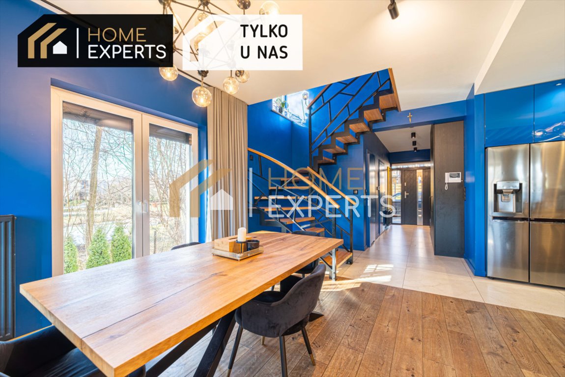 Salon od południowego zachodu z dużymi oknami, wyjściem na wygody taras i widokiem na zieleń. Na podłodze w salonie trwała i ponad czasowa deska dębowa a pod sufitem drewniane lamele ocieplające klimat wykończenia. W pokoju dzienny znajduje się wygodny, rodziny zestaw wypoczynkowy i 6 osobowy stół jadalniany.