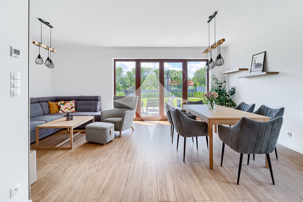 Dom jest w pełni urządzony – wysokiej klasy sprzęty oraz materiały. Wykończenie oraz zabudowy wykonane przez sprawdzonych fachowców, przemyślana aranżacja wnętrz.