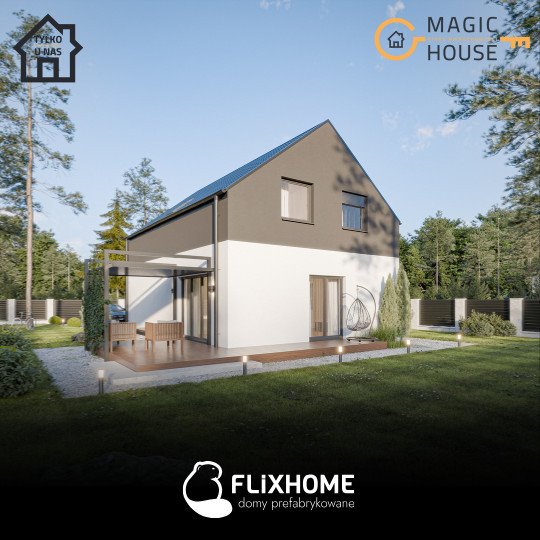 Oferujemy na sprzedaż działkę z opcją realizacji nowoczesnego domu w technologii prefabrykacji żelbetonowej, dzięki współpracy biura nieruchomości Magichouse oraz Flixhome.