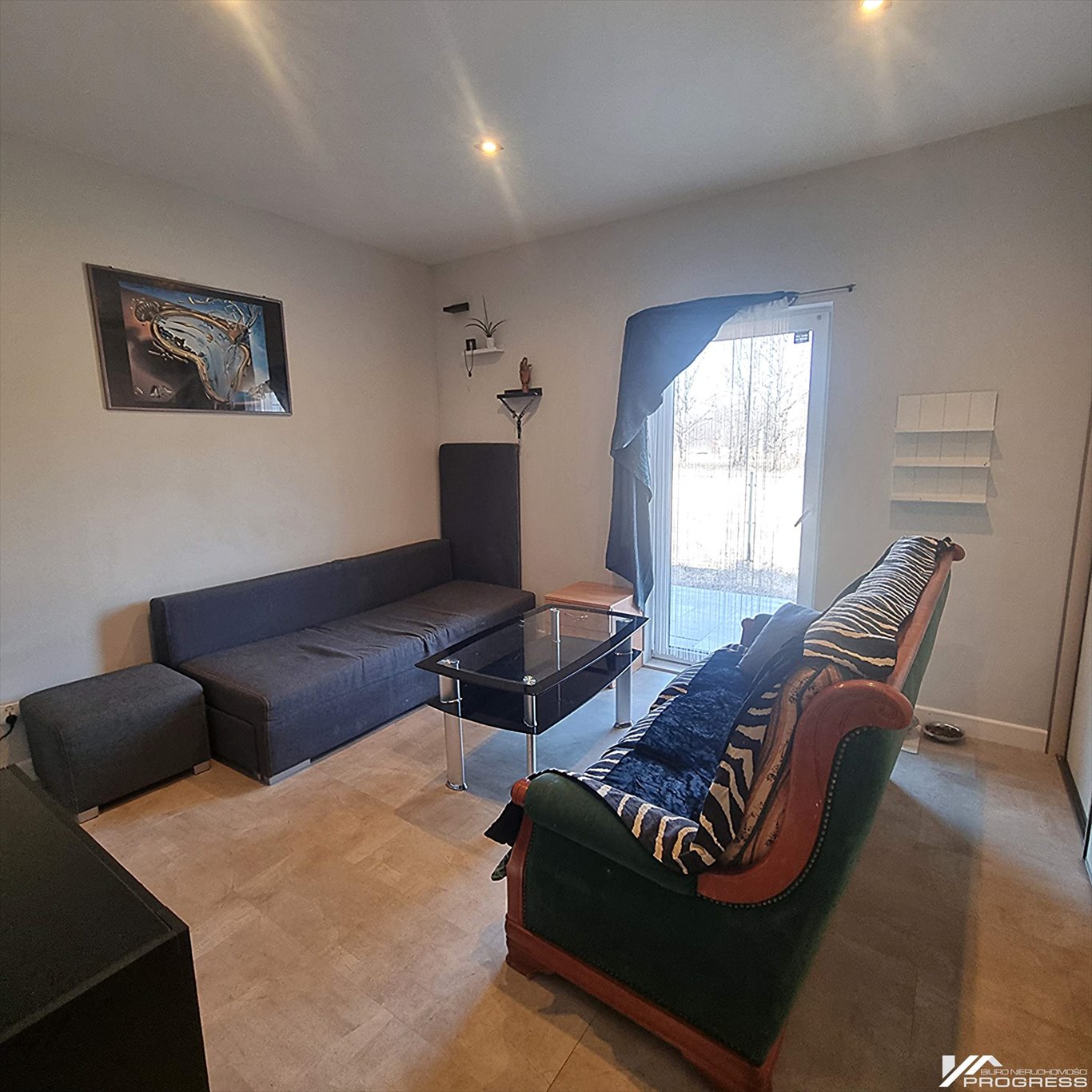 przestronny salon z dużym przeszkleniem i wyjściem na taras,