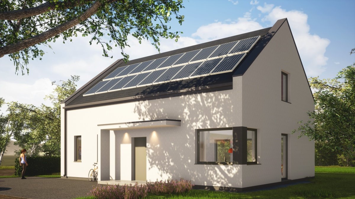 Zaznaczone media oraz panele fotowoltaiczne na wizualizacji nie zawierają się w ofercie sprzedaży.
