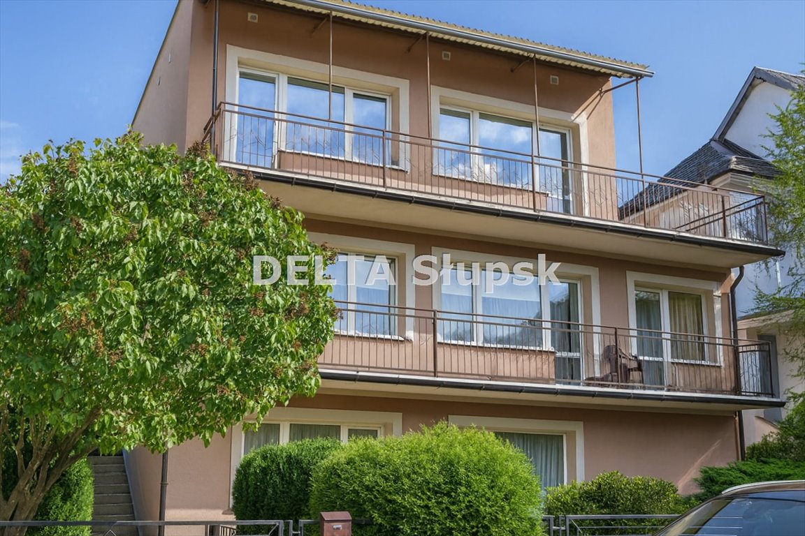 Biuro Nieruchomości DELTA oferuje na sprzedaż dom jednorodzinny w Ustce wschodniej, przy ulicy Krasickiego w spokojnej dzielnicy z zabudową jednorodzinną. Układ funkcjonalny: na parterze 4 pokoje, 2 x w.c., kotłownia, korytarz i wiatrołap; na piętrze: 4 pokoje, kuchnia, łazienka, osobne w.c., korytarz i wiatrołap oraz balkon; na drugim piętrze 3 pokoje łazienka, korytarz i duży taras oraz balkon. Dodatkowo na działce budynek wolno stojący z dwoma pokojami i garażem. Nieruchomość z dobrym dojazdem uliczką osiedlową, ogrodzona, z rosnącymi na działce drzewami i krzewami owocowymi i ozdobnymi. Ogrzewanie i ciepła woda z pieca gazowego dwuobiegowego. Obecnie nieruchomość wykorzystywana na wynajem. Oferta godna polecenia dla osób chcących mieszkać w Ustce i czerpać dochody z wynajmu pokoi pracownikom lub letnikom.