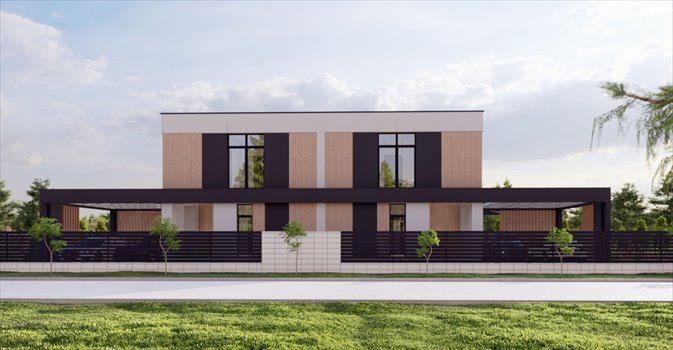 Cena: 1.850.000zł brutto. (cena obejmuje segment jak na wizualizacji, ogrodzenie, bramę wjazdową, podjazdy, miejsca parkingowe pod wiatami oraz nowoczesną pompę ciepła).