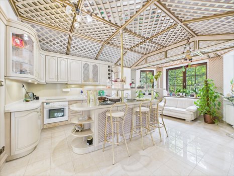 - kuchnia oraz elementy parteru (w tym słupy) wykonane z Corianu