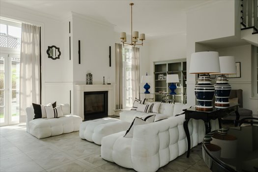 Every element of this house has been meticulously chosen, from the Italian Bisazza sinks and Roberto Cavalli stoneware floors to the Gaggenau kitchen appliances and designer lamps by Eichholtz and Delightful. The wooden kitchen with its granite countertop and the room furniture were all custom-made. The Retro Berker hardware and the Berker Palazzo line add an extra layer of charm to the interiors. The shutters here serve a dual purpose, both decorative and protective, providing security while creating a unique atmosphere for the residence.