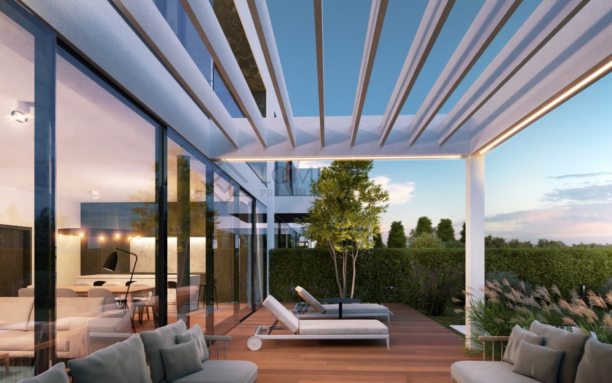 Mamy ogromną przyjemność zaprezentować nowoczesny i luksusowy dom w stanie deweloperskim położony na zamkniętym, kameralnym osiedlu zlokalizowanym na Warszawskich Błoniach w Wilanowie.