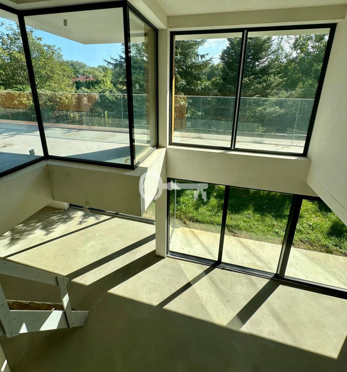 * Salon z wysokim sufitem (6 m) i przeszklonymi narożnikami (glass corner),