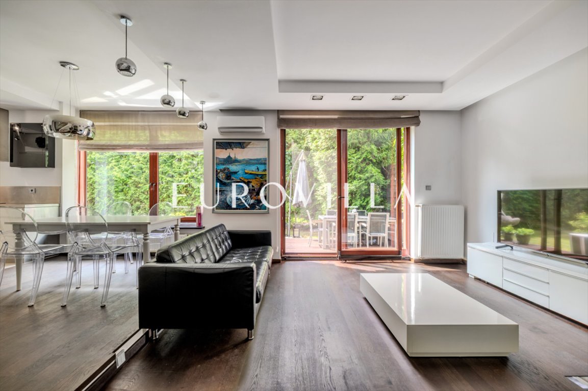EUROVILLA prezentuje na sprzedaż dom w zabudowie bliźniaczej o powierzchni 183,5m2 zlokalizowany na zamkniętym, strzeżonym osiedlu w Powsinie. W skład nieruchomości wchodzi: salon z kominkiem z wyjściem do ogrodu, jadalnia, kuchnia, toaleta, 4 sypialnie, 3 łazienki, pralnia, miejsce przygotowane pod montaż sauny, taras, balkon i pokój do dowolnej aranżacji, garaż.