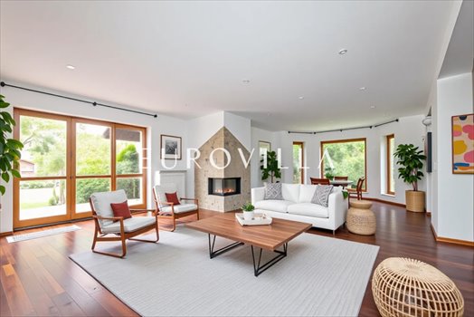 Dom został wykończony z dbałością o każdy detal, z wykorzystaniem materiałów najwyższej jakości. Na parterze podłogi zdobi olejowany parkiet merbau, znany ze swojej wytrzymałości i eleganckiego wyglądu, natomiast na piętrze zastosowano klasyczny lakierowany dąb. W salonie znajduje się stylowy kominek, zaprojektowany na specjalne zamówienie, który stanowi serce domu, idealne miejsce do spędzania chłodnych wieczorów.