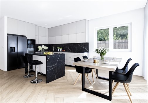 Celem właścicieli było stworzenie funkcjonalnej i eleganckiej przestrzeni, stąd ponadczasowa, stonowana kolorystyka wnętrz, przemyślane detale i wygodne meble. Dbałość o detal oraz trwałość budynku widać już na pierwszy rzut oka. Dom został wykończony pod klucz materiałami dobrej jakości niespełna kilka miesięcy temu i sprzedawany jest z pełnym umeblowaniem i wysokiej klasy sprzętami AGD, co umożliwia szybkie wprowadzenie się bez większych nakładów finansowych.