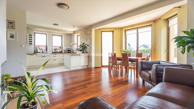 Dom jest ogrzewany gazowo, przy czym w przedpokoju oraz łazienkach zastosowano ogrzewanie podłogowe, co zapewnia komfort ciepła w każdym pomieszczeniu. Okolica, w której się znajduje, jest doskonała - zaledwie 20 minut drogi od centrum Krakowa, zapewniając jednocześnie ciszę i spokój. Na działce znajdują się również krzewy ozdobne, które dodają uroku temu miejscu.