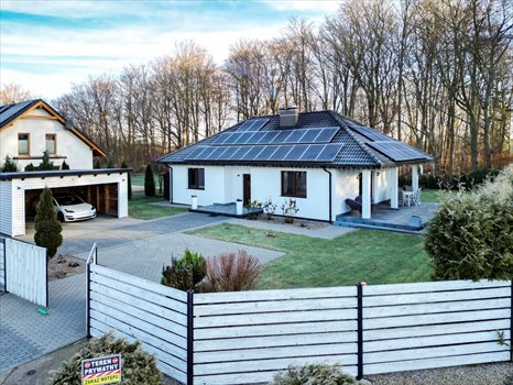 Dojazdy i ścieżki na terenie posesji zostały wyłożone kostką brukową, tworząc estetyczny i trwały układ komunikacyjny. Na działce znajduje się wolnostojący garaż o powierzchni 36 m², wyposażony w automatyczną bramę oraz stację ładowania samochodu elektrycznego - to idealne rozwiązanie dla nowoczesnych i ekologicznych właścicieli.