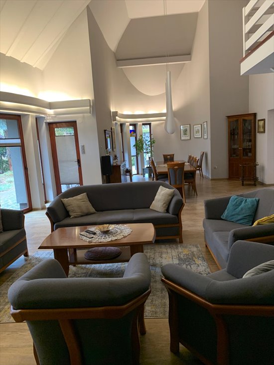 Na sprzedaż niestandardowa nieruchomość, składająca się z dużego domu mieszkalnego, gabinetów do praktyki medycznej, oraz niedużego mieszkania na parterze z osobnym wejściem, na działce ok. 3.000 m2. Dom mieszkalny składa się z dużego salonu z dużą jadalnią, kuchnią i łazienką na parterze. W części gospodarczej na parterze znajduje się garderoba, garaż, pomieszczenie biurowe, oraz kotłownia, obsługująca pompę ciepła, panele fotowoltaiczne, kocioł gazowy i kominek z płaszczem wodnym. Na piętrze znajduje się sześć sypialni, sauna, dwie łazienki i duże pomieszczenie gospodarcze. Na piętrze od strony południowej, jest balkon, na który można wyjść z kilku pokoi. Więźba dachowa pokryta dachówką ceramiczną, na części której znajdują się panele fotowoltaiczne. Wszystkie okna drewniane mahoniowe. Część salonowa i jadalniana jest wysoka, ( ok. 5m) sięgająca połaci dachowej. W części gdzie prowadzona była praktyka medyczna, znajduje pomieszczenie recepcji z poczekalnią, cztery gabinety i łazienka. Dostęp do tej części oddzielną bramą. Oddzielne wejście, ma także mieszkanie na parterze, składające się z saloniku z aneksem kuchennym, sypialni i łazienki. Wokół domu, jest zadbany ogród z wieloma drzewami, oczkiem wodnym, domkiem gospodarczym, w którym znajduje się centrala sterowania systemem nawadniania. Przy garażu znajduje się bank energii dla fotowoltaiki, oraz stacja ładowania dla aut elektrycznych. Miejsce ciche, praktycznie pozbawione ruchu kołowego, z szybkim dostępem do obwodnicy śródmiejskiej i autostradowej. Cena 4,5 mln zł do negocjacji