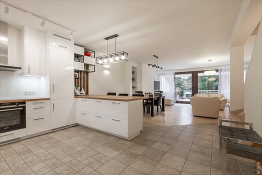 Wnętrze domu zostało zaprojektowane z myślą o funkcjonalności i komforcie. Duże przesuwne okna w pokoju dziennym z widokiem na ogród tworzą idealną przestrzeń do rodzinnych spotkań lub chwili wytchnienia od codziennego zgiełku miasta. Sprzedaż bez mebli ruchomych widocznych na zdjęciach.