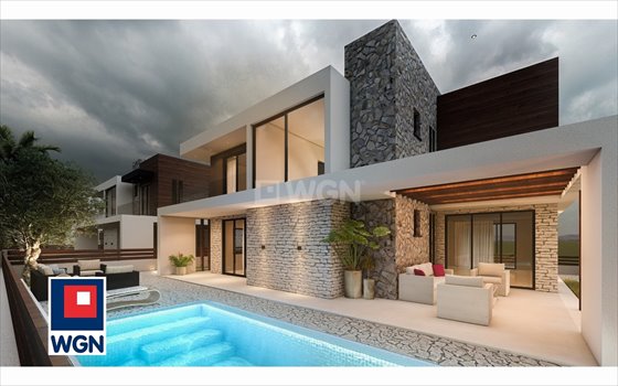 Willa posiada taras zewnętrzny o powierzchni 32 m2, który będzie doskonałym miejscem na grilla i imprezy rodzinne oraz zadaszony taras o powierzchni 15.6 m2, zapewniający wygodne miejsce do wypoczynku w cieniu. Prywatny basen pozwala w każdej chwili się ochłodzić i cieszyć pływaniem. Willa ta doskonale łączy w sobie elegancki design, przestronne przestrzenie i nowoczesne udogodnienia, tworząc idealne miejsce do życia w komforcie i stylu.