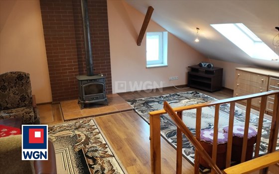 Dom składa się z dwóch części: Część mieszkalna o powierzchni 140 m2 składa się w dolnej kondygnacji z 3 pokoi, w tym z dużego salonu z wyjściem na taras, 2 łazienek ( jedna z kabiną, druga z wanną ) oraz kuchni z piecem kaflowym. W górnej kondygnacji mamy też 3 pokoje, w tym obszerny salon z wolnostojącym kominkiem. Część gospodarcza domu o powierzchni 64 m2 to garaż z piwnicą idealną na ewentualną kotłownię.