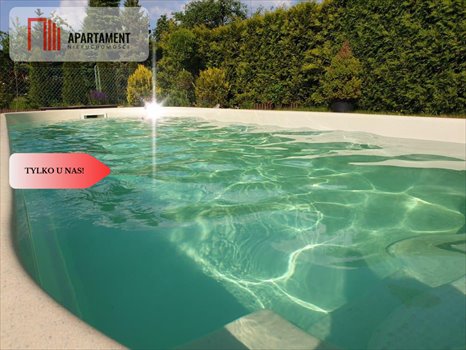 Działka ma powierzchnię ok 400 m2. Teren działki bardzo zadbany, na działce liczne nasadzenia oraz duży całoroczny basen.