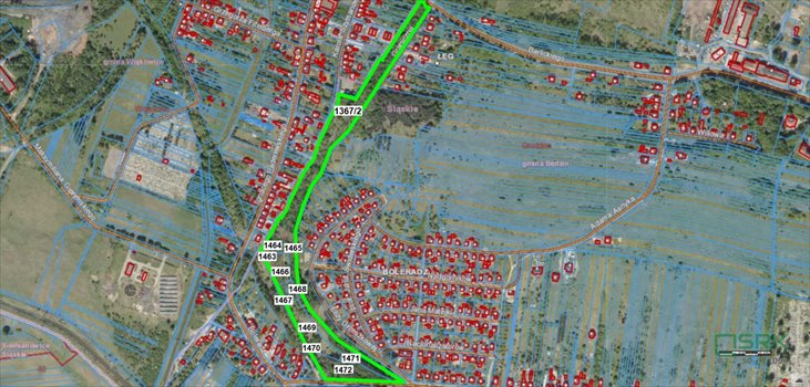 Nieruchomość została zapisana w księdze wieczystej nr KA1B/000pokaż telefon (10 działek) i nr KA1B/000pokaż telefon (1 działka) prowadzonej przez Sąd Rejonowy w Będzinie.