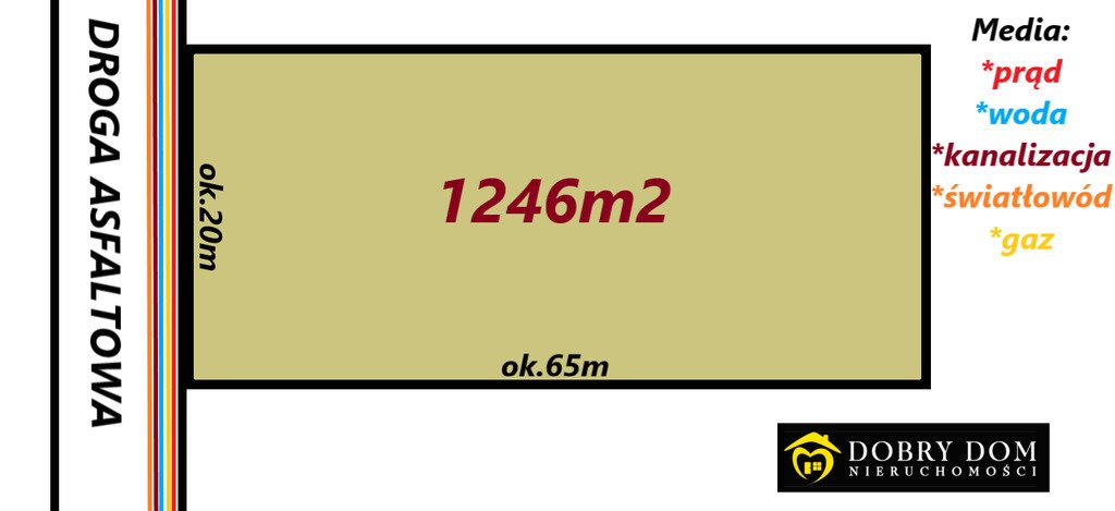 Dojazd drogą asfaltową. Pełne media w drodze.