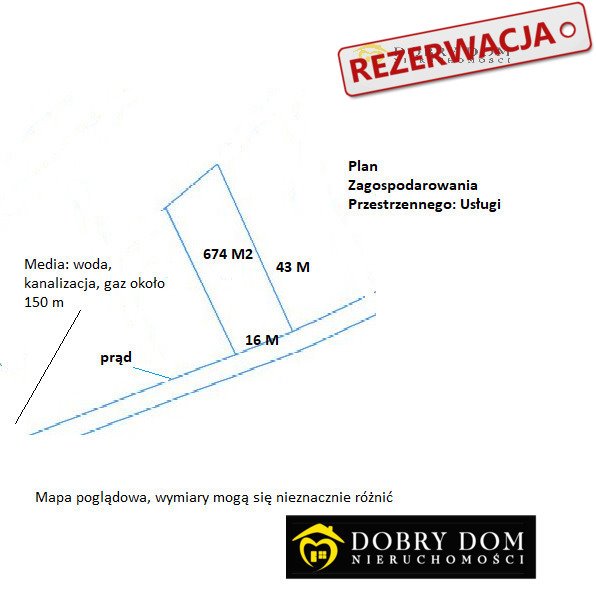 Działka o powierzchni 674 m2, przy której znajduję się możliwość przyłącza elektrycznego, wodnego kanalizacyjnego oraz sieci telekomunikacyjnej.