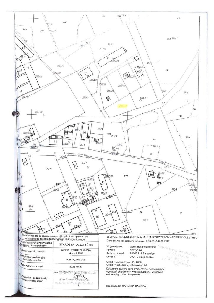 na sprzedaż niezabudowanej nieruchomości gruntowej, stanowiącej własność Gminy Biskupiec, dla której Sąd Rejonowy w Biskupcu prowadzi księgę wieczystą nr OL1B/000pokaż telefon, położonej w Biskupcu (obręb miasto Biskupiec 5), przy ulicy Bolesława Chrobrego, oznaczonej numerem działki 286/32 o powierzchni 0,1667 ha (oznaczenie wg użytków i klasy gruntu: RV).