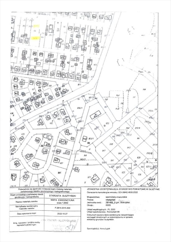 Nieruchomości, dla których prowadzona jest księga wieczysta nr OL1B/000pokaż telefon, położone w Biskupcu (obręb miasto Biskupiec 5) przy ulicach: