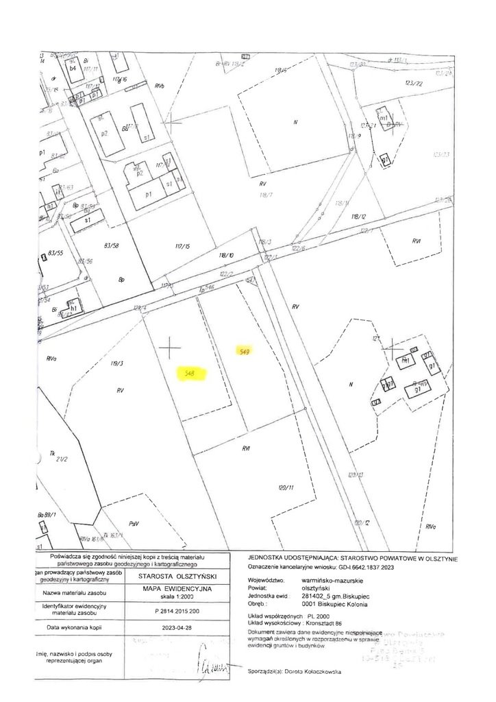 Nieruchomości położone w Biskupcu-Kolonii Drugiej (obręb 1 Biskupiec Kol.), dla których prowadzona jest księga wieczysta nr OL1B/000pokaż telefon, oznaczone numerami działek: