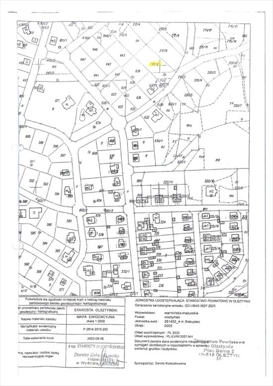 Nieruchomość położona w Biskupcu przy ul. Złotej (obręb miasto Biskupiec 5), dla której prowadzona jest księga wieczysta nr OL1B/000pokaż telefon, oznaczona numerem działki 217/12 o powierzchni 0,1961 ha
