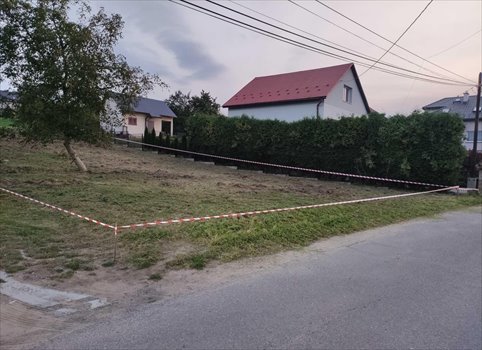 Działka na zdjęciach oznaczona jest białoczerwoną taśmą.