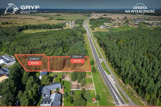 Na sprzedaż dwie atrakcyjne działki w Bydlinie położone przy drodze krajowej nr 21 o łącznej powierzchni 4742 m².