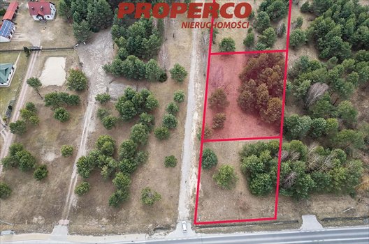 Działka w kształcie zbliżonym do prostokąta, w drugiej linii w stosunku do drogi asfaltowej, wojewódzkiej. Dojazd do działki drogą asfaltową (wojewódzką) i ok. 30 m szutrową drogą prywatną (udział w drodze). Działka nieogrodzona, niezagospodarowana.
