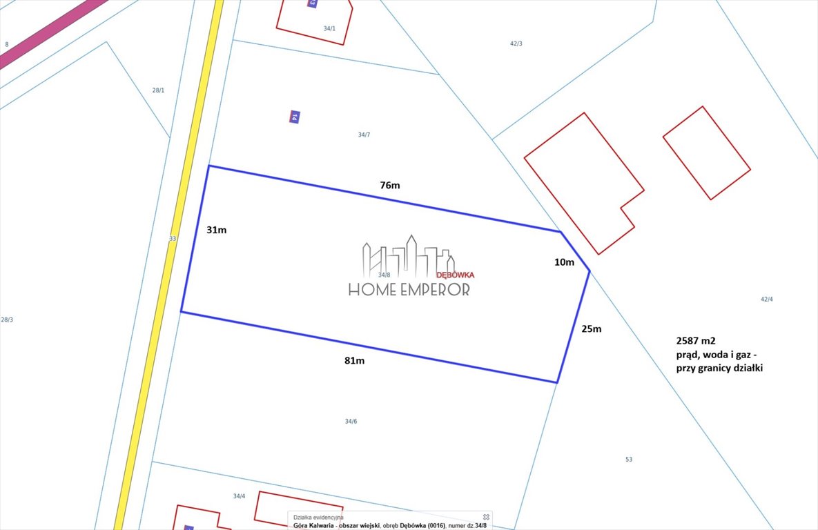 Działka 2587 m² z mediami i możliwością zabudowy Dębówka - 2587,0m2