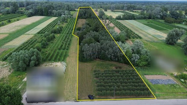 Na sprzedaż dostępna jest działka o imponującej powierzchni 4,4 hektara. Zgodnie z planem, część terenu została przeznaczona pod zabudowę zagrodową, zajmującą około 2000 metrów kwadratowych, natomiast pozostała część stanowi obszar rolny, obecnie pełniący funkcję sadu jabłkowego.
