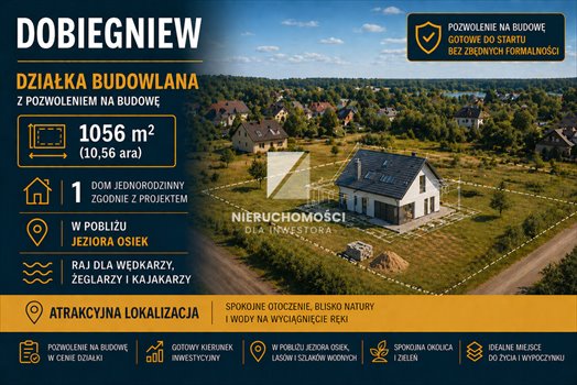 Dobiegniew | 1056 m² | Działka budowlana z pozwoleniem na budowę domu jednorodzinnego