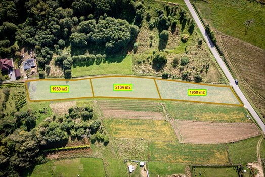 Powierzchnie: 1950 m², 2184 m² i 1958 m² – prostokątne kształty, łatwe do zagospodarowania.