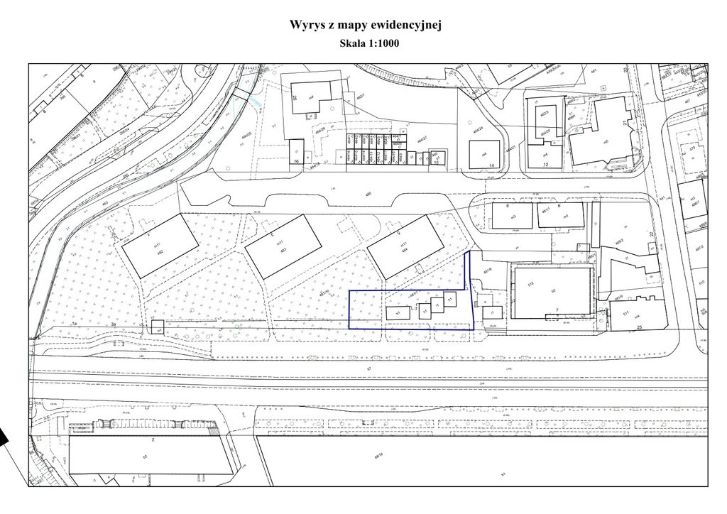 2. Opis nieruchomości: nieruchomość położona w śródmieściu, wśród zabudowy mieszkaniowej wielorodzinnej oraz handlowo-usługowej, zabudowana czterema parterowymi, nietrwale związanymi z gruntem, pawilonami handlowo – usługowymi, przeznaczonymi do rozbiórki. Teren nieruchomości w części utwardzony nawierzchnią z płyt chodnikowych. Przez działkę przebiega ogólnodostępny ciąg pieszy. Nieruchomość całą południową granicą przylega do pasa drogowego drogi wojewódzkiej nr 500, tj. Alei Grunwaldzkiej, przy czym dojazd do nieruchomości odbywać się będzie od strony ulicy Widok. Na terenie działki, w zachodniej jej części, zlokalizowany jest fragment ogrodzenia.