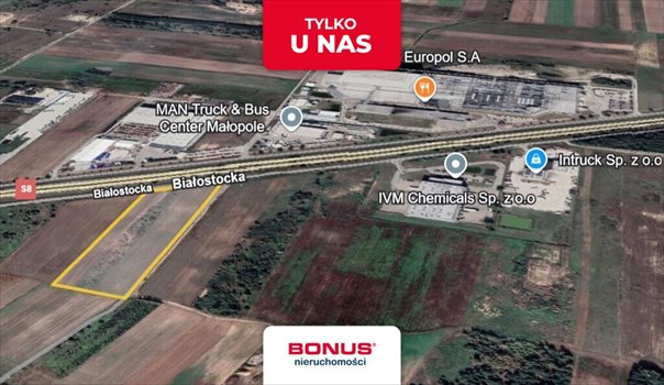 Doskonała widoczność z trasy S8, wjazd na działkę z asfaltowej drogi serwisowej, w okolicy istniejąca zabudowa produkcyjno-magazonowa renomowanych firm.