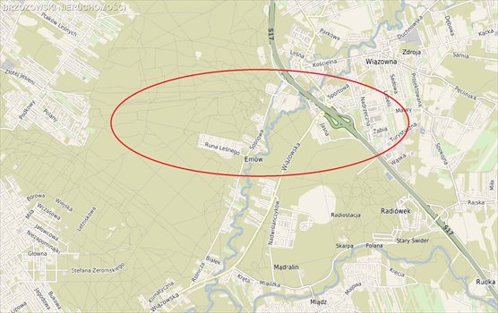Działka budowlana o powierzchni 2300 m2, zlokalizowana w Emowie (gmina Wiązowna), na terenie Mazowieckiego Parku Krajobrazowego imienia Czesława Łaszka.