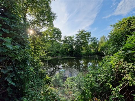 - Druga działka, o powierzchni 2500 m2, posiada bezpośredni dostęp do niewielkiego zbiornika wodnego. Na tej działce obecnie znajduje się rozległa łąka oraz wysokie drzewa, tworzące naturalną granicę od strony wody.