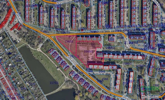 Nieruchomość gruntowa niezabudowana, stanowiąca dwie działki o numerach 1560/1 i 1560/2 o łącznej powierzchni 1,0318 ha. Działki stanowią teren zieleni pomiędzy blokami mieszkalnymi, poprzecinany chodnikami i częściowo wykorzystywany jako parking. Działki leżą na terenie płaskim, mają nieregularny kształt. W bliskiej odległości znajdują się budynki handlowe, usługowe, placówki oświaty i służby zdrowia, obiekty sportowe. W odległości ok. 6 km znajduje się centrum miasta. W pobliżu nieruchomości znajduje się węzeł drogowy A1-DTŚ, a w odległości ok. 5 km A4.