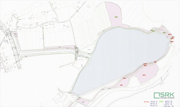 III.92ZP3 - tereny zieleni przywodnej w bezpośrednim sąsiedztwie wód stojących i płynących; III.81BW - budowle piętrzące: zapory, wały przeciwpowodziowe; III.85WS2 - tereny wód otwartych stojących; III.89P1 - teren pod obszar i urządzenia związane z wydobyciem metanu, borowiny i solanki; III.78R - tereny rolne; III.80ZL1 - tereny lasów; III.04KDD - tereny dróg dojazdowych; III.70P2 - przemysł, rzemiosło produkcyjne; III.71TIK - tereny infrastruktury technicznej - kanalizacji.