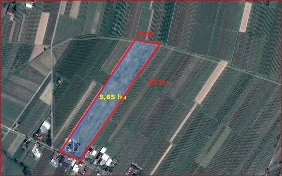 Wymiary działki: szerokość ok. 90 m, długość ok. 623 m