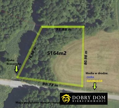 Nieruchomość położona w sąsiedztwie rzeki Brzozówka, wśród pól, łąk i lasów. Idealna pod rekreację.