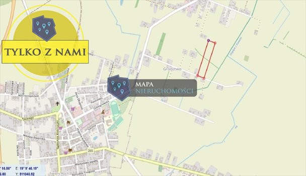Mapa Nieruchomości prezentuje na sprzedaż działkę budowlaną w kształcie prostokąta o powierzchni 1500m2 w miejscowości Grodztwo k. Kowala