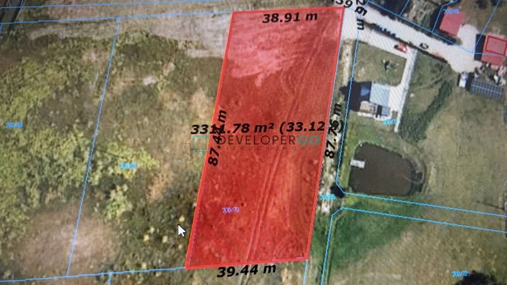 - Media: brak bezpośrednio na działce (typowy stan dla gruntów rolnych)