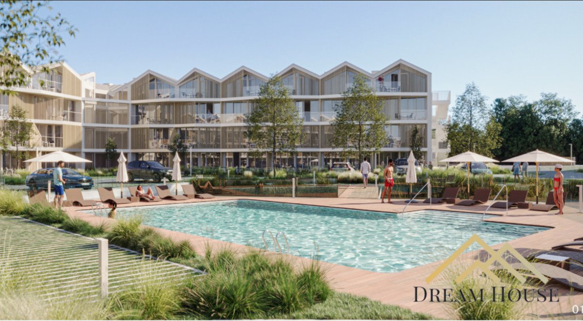 Inwestycja składa się z kompleksu czterech pięknie zlokalizowanych budynków, tworzący spójny resort wypoczynkowy za basenem o powierzchni 200 m2 i cześciami wspólnymi, w skład których wchodzą ogrody deszczowe i projektowana zieleń niska i wysoka. Charakteru dodają zielone dachy ostatnich kondygnacji rozpościerać się będzie zapierający dech w piersiach widok na polskie morze. Usytuowanie budynków po obrysie działki czyni inwestycję idealnym miejscem do wypoczynku dla najbardziej wymagających klientów.