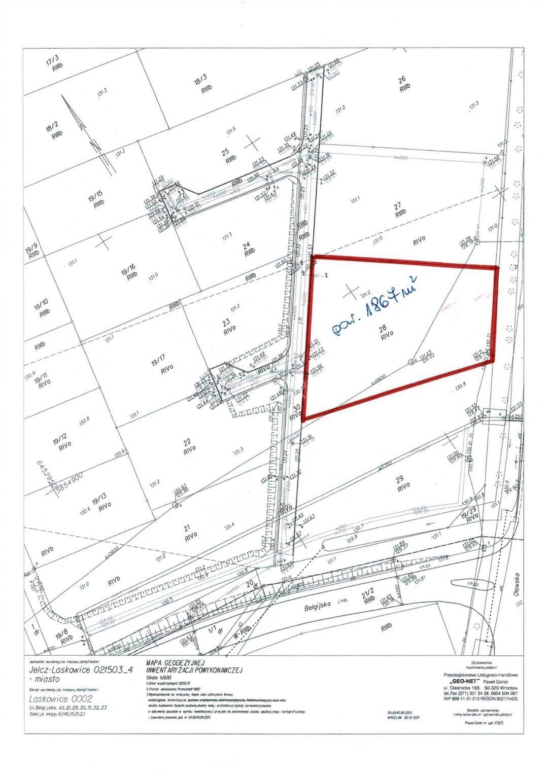 Działka inwestycyjna 1867 m2 w Jelczu-Laskowicach Jelcz-Laskowice - 1867,0m2